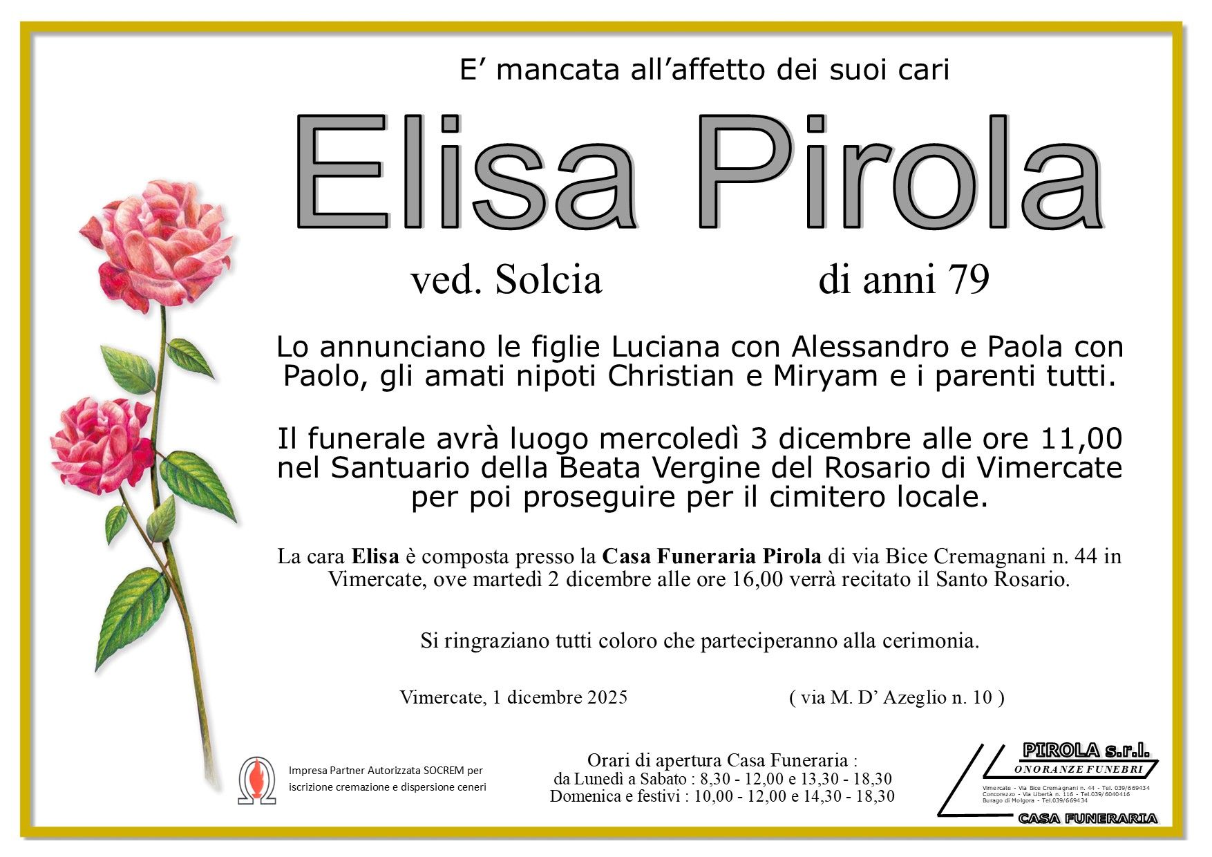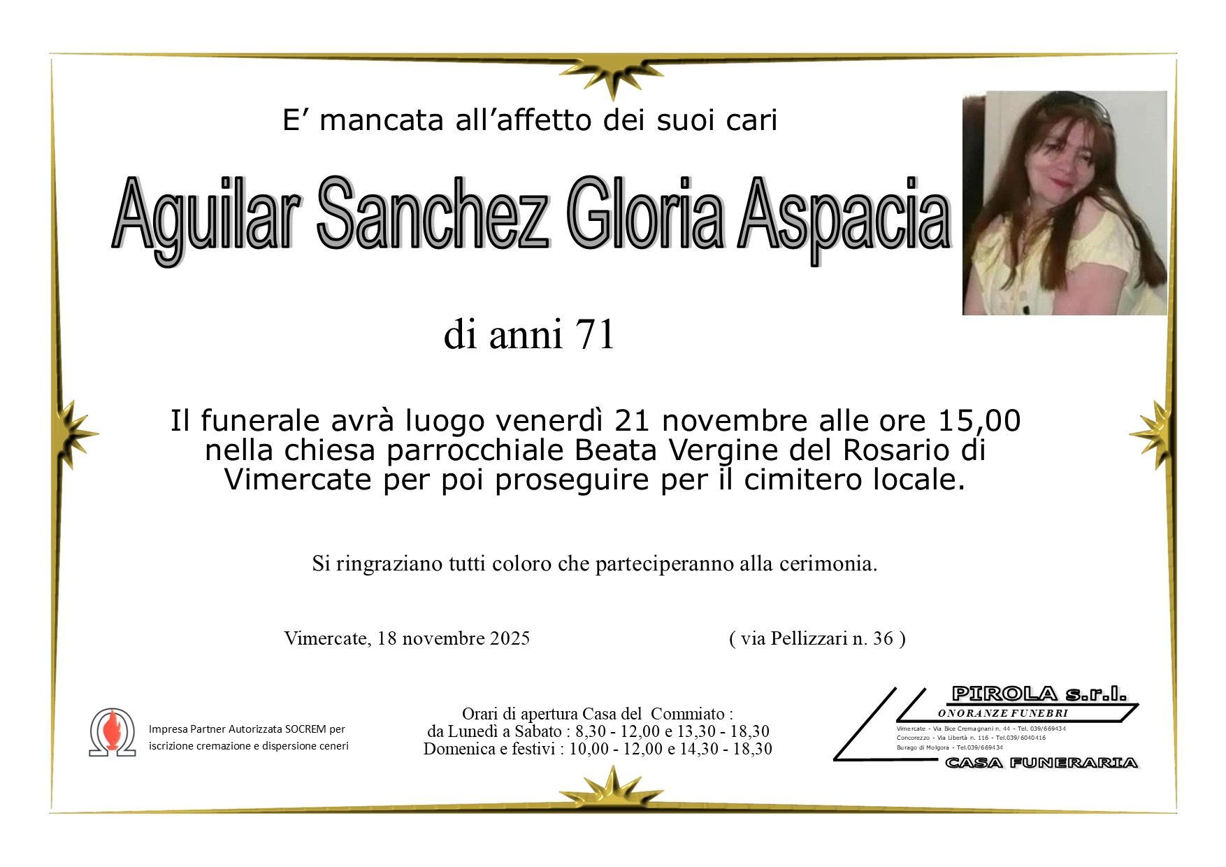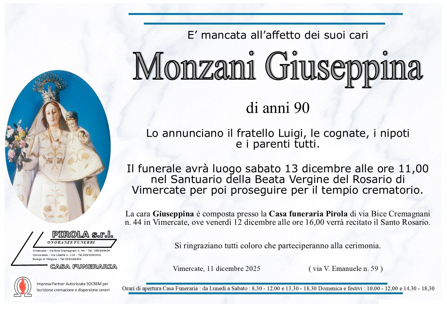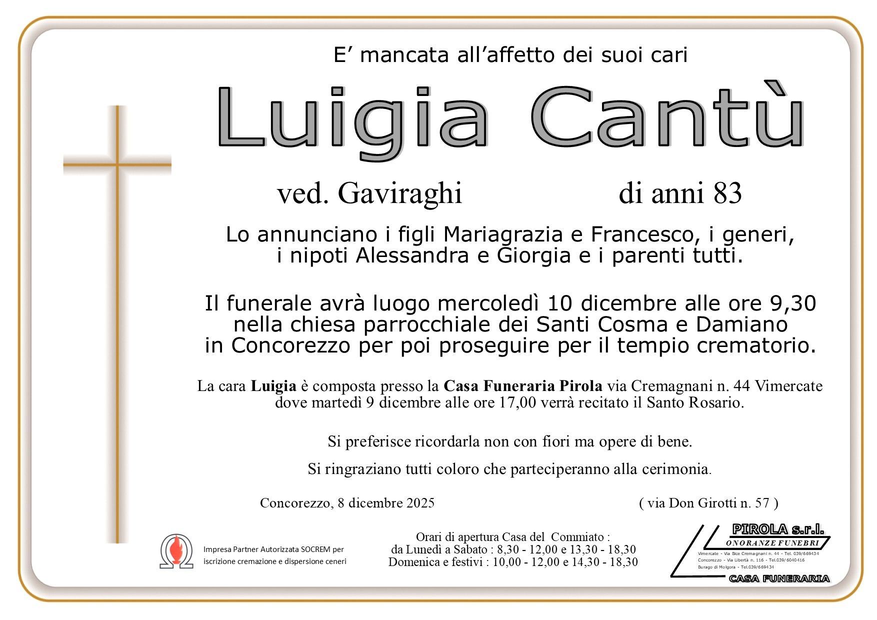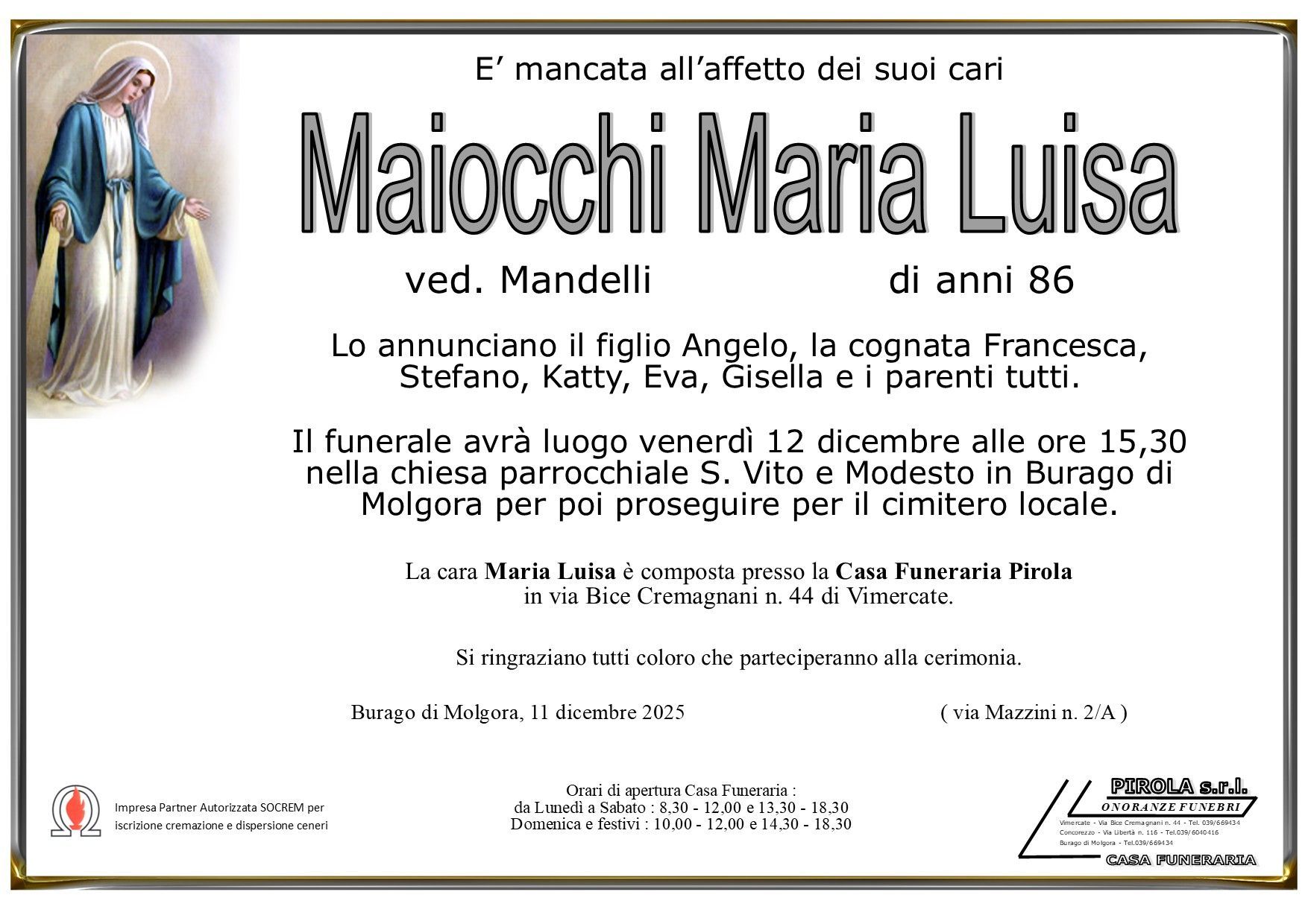 In questa sezione dei necrologi funebri viene offerta anche la possibilità di inviare un messaggio di condoglianze alla famiglia del defunto tramite la nostra agenzia.