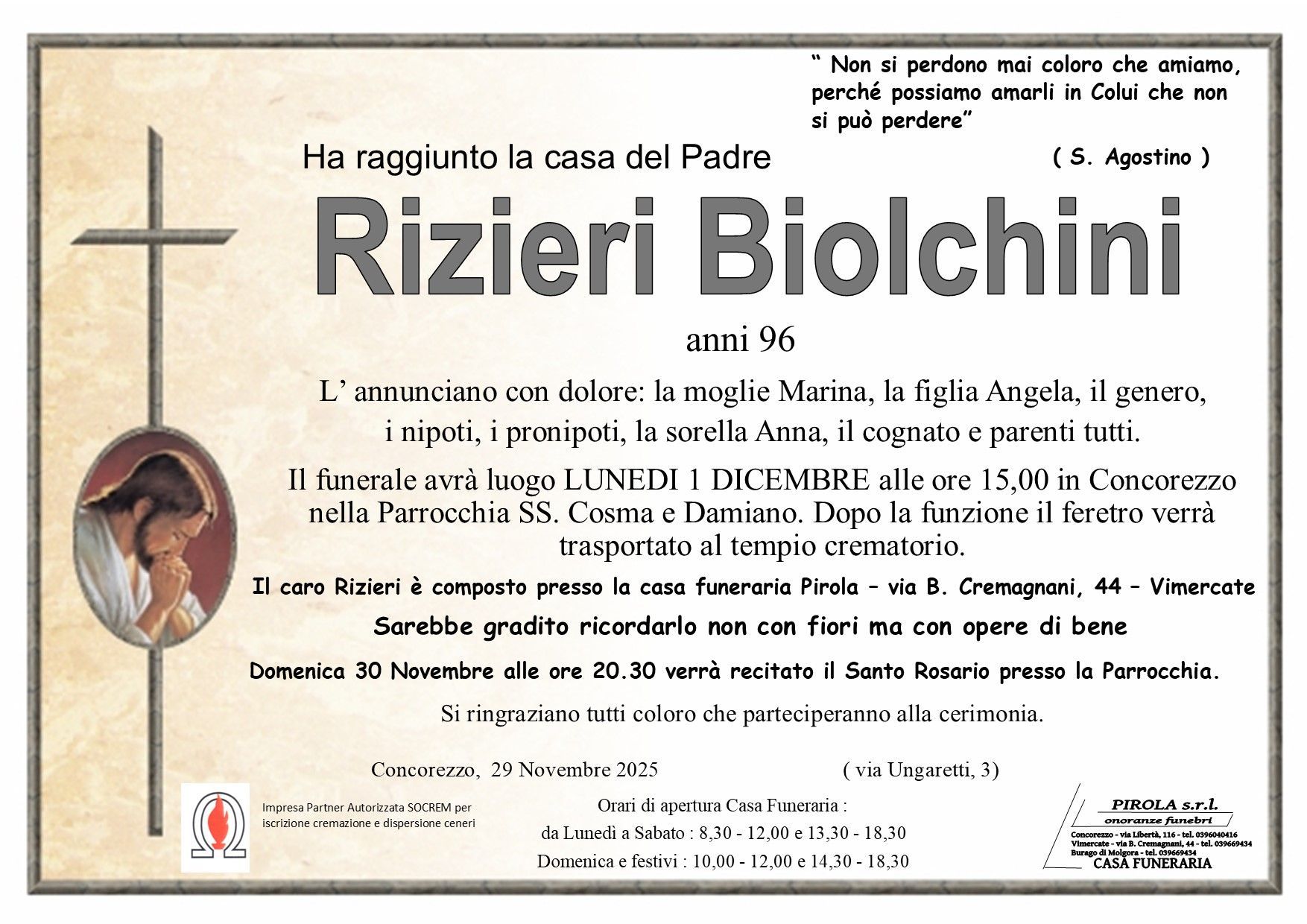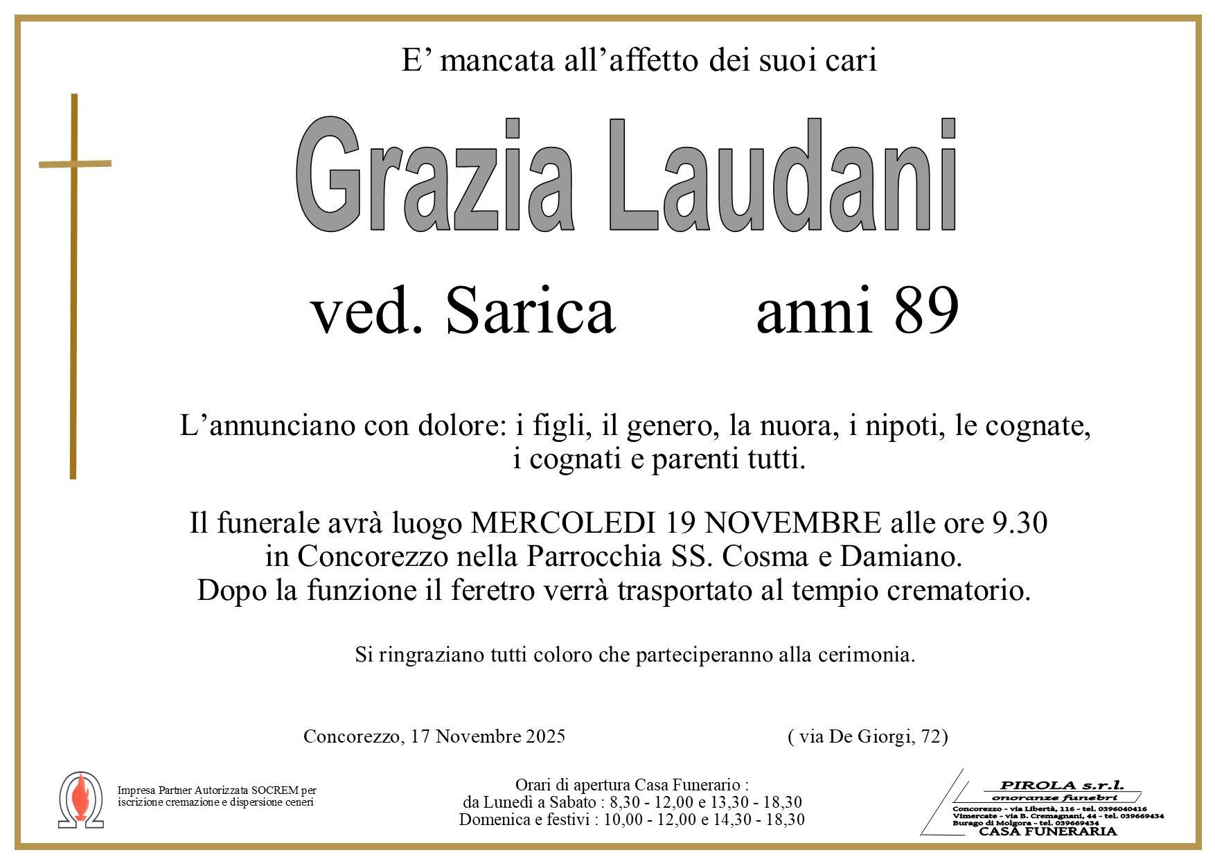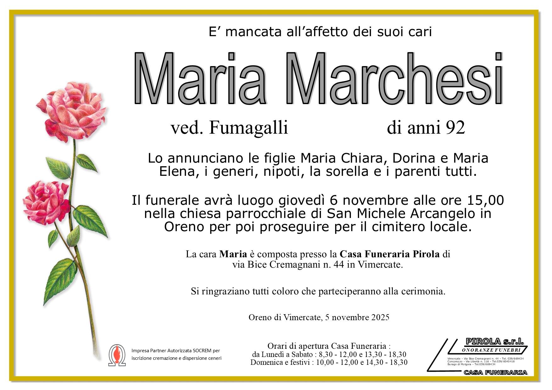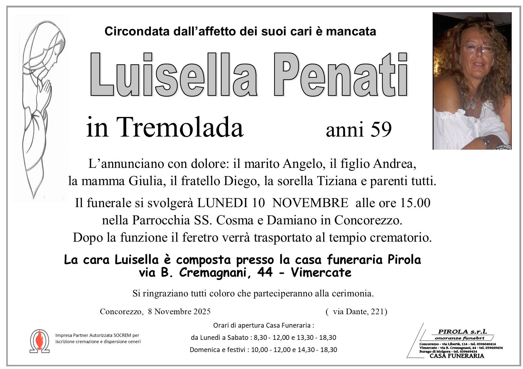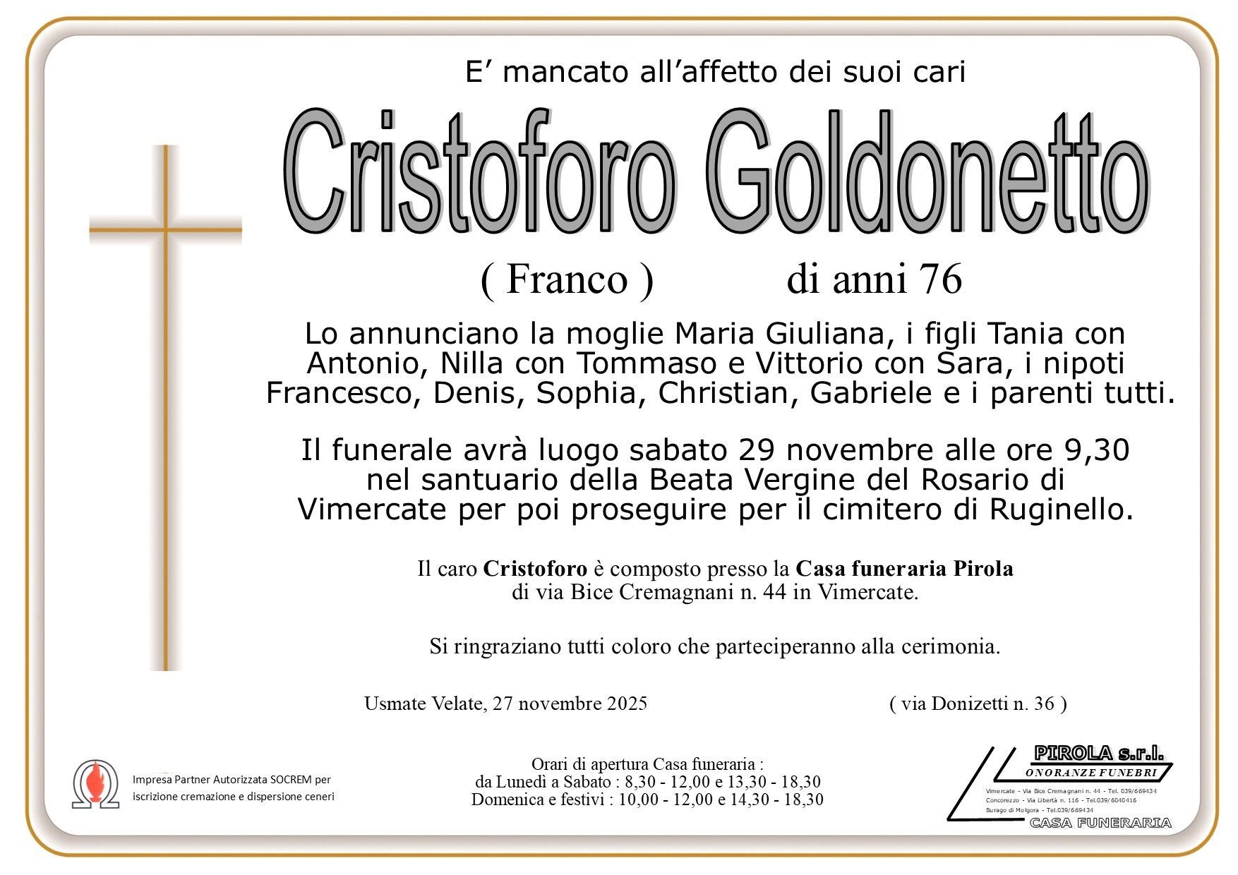 In questa sezione dei necrologi funebri viene offerta anche la possibilità di inviare un messaggio di condoglianze alla famiglia del defunto tramite la nostra agenzia.