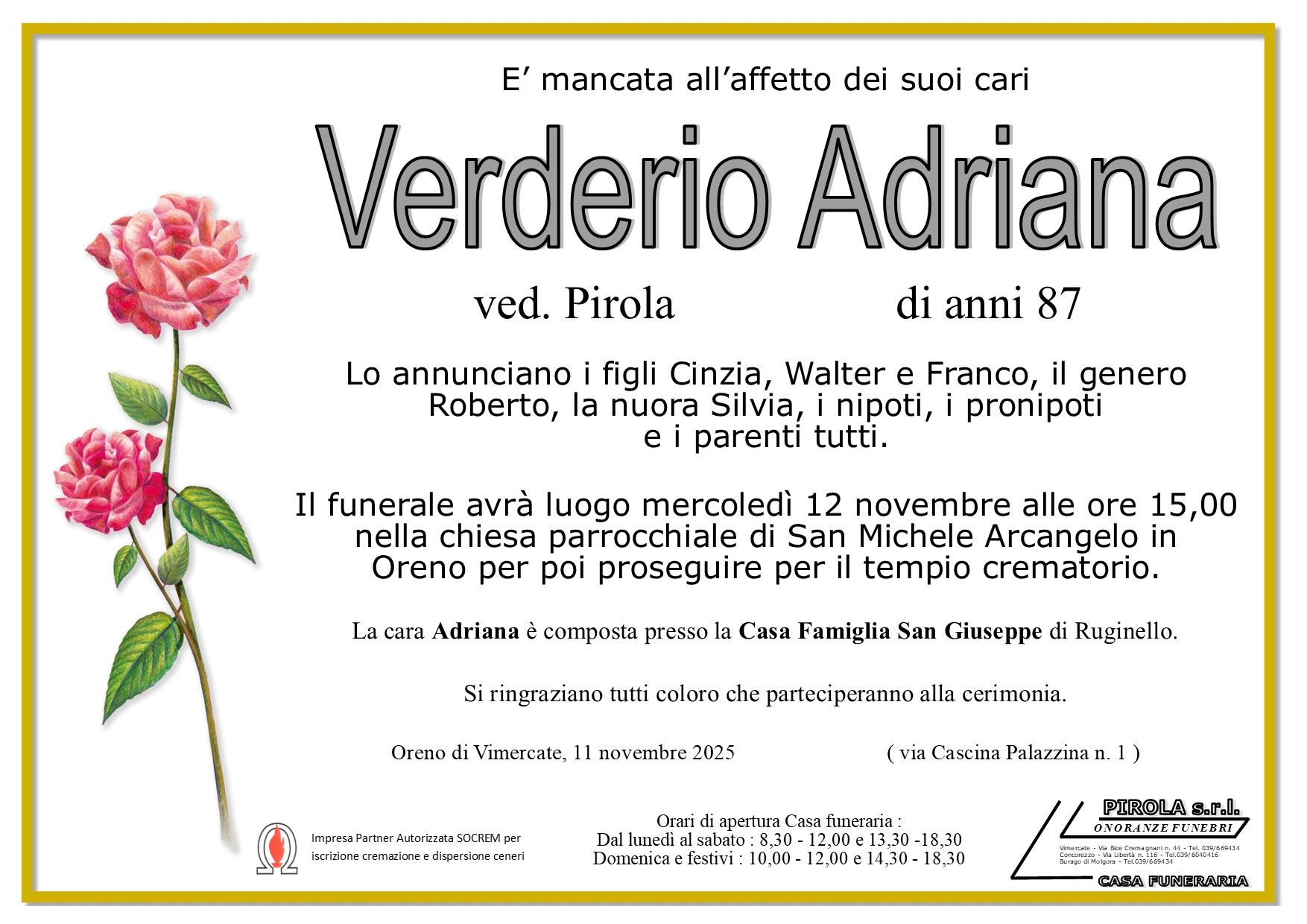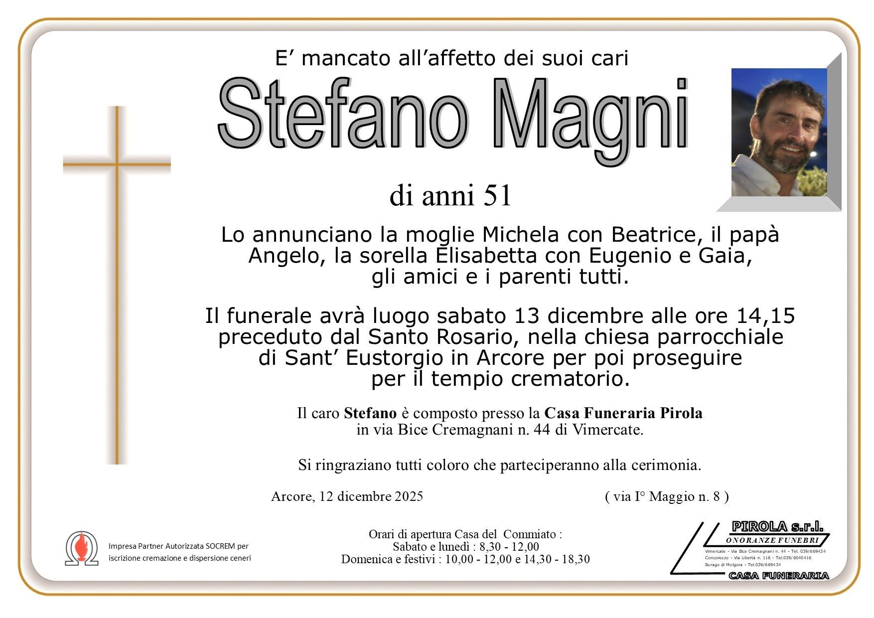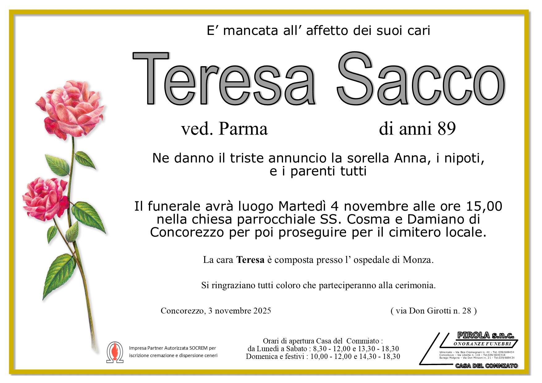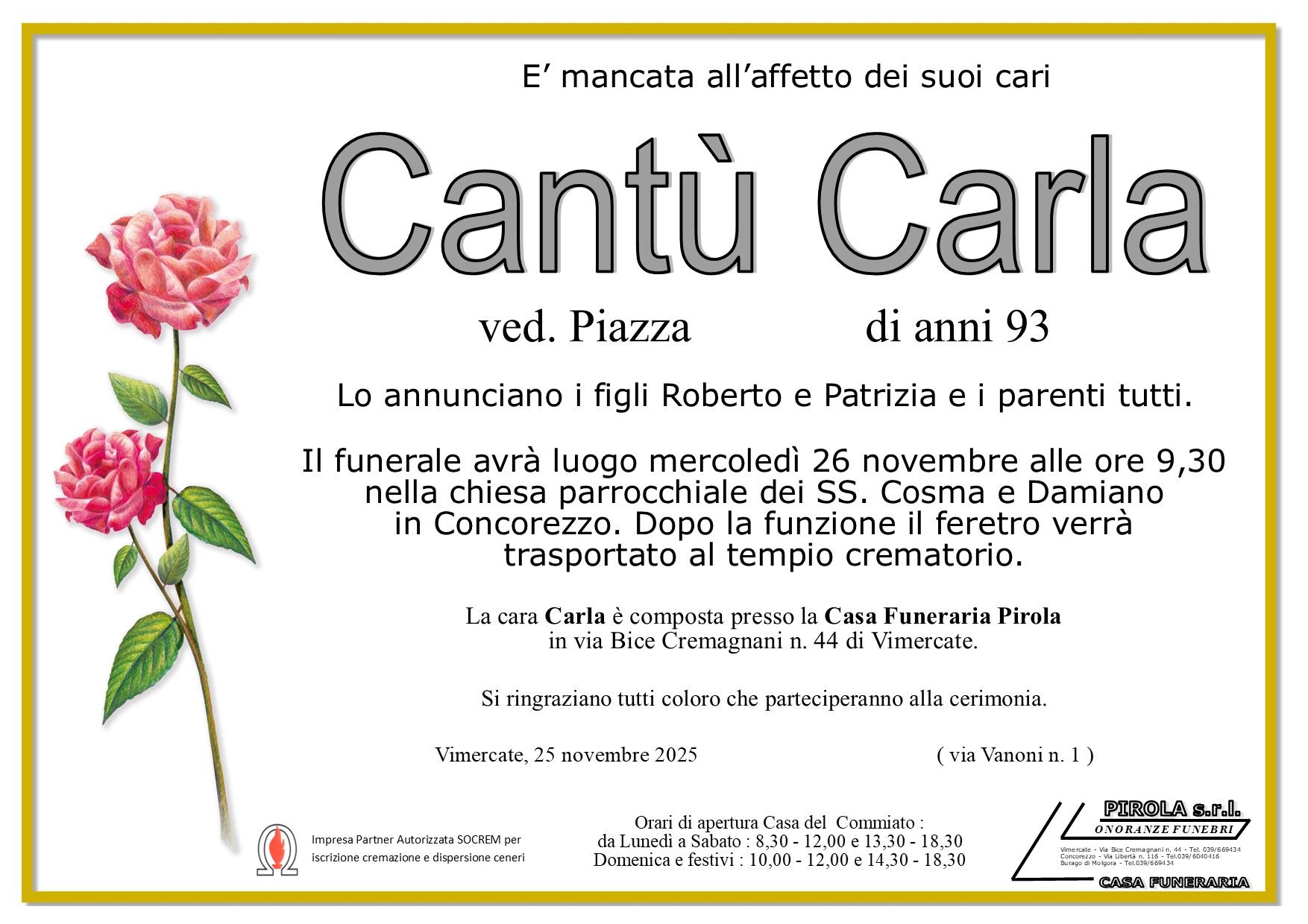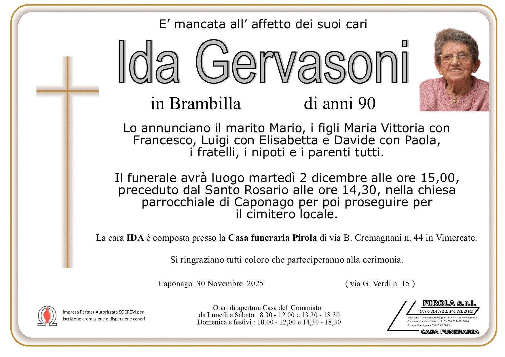 In questa sezione dei necrologi funebri viene offerta anche la possibilità di inviare un messaggio di condoglianze alla famiglia del defunto tramite la nostra agenzia.