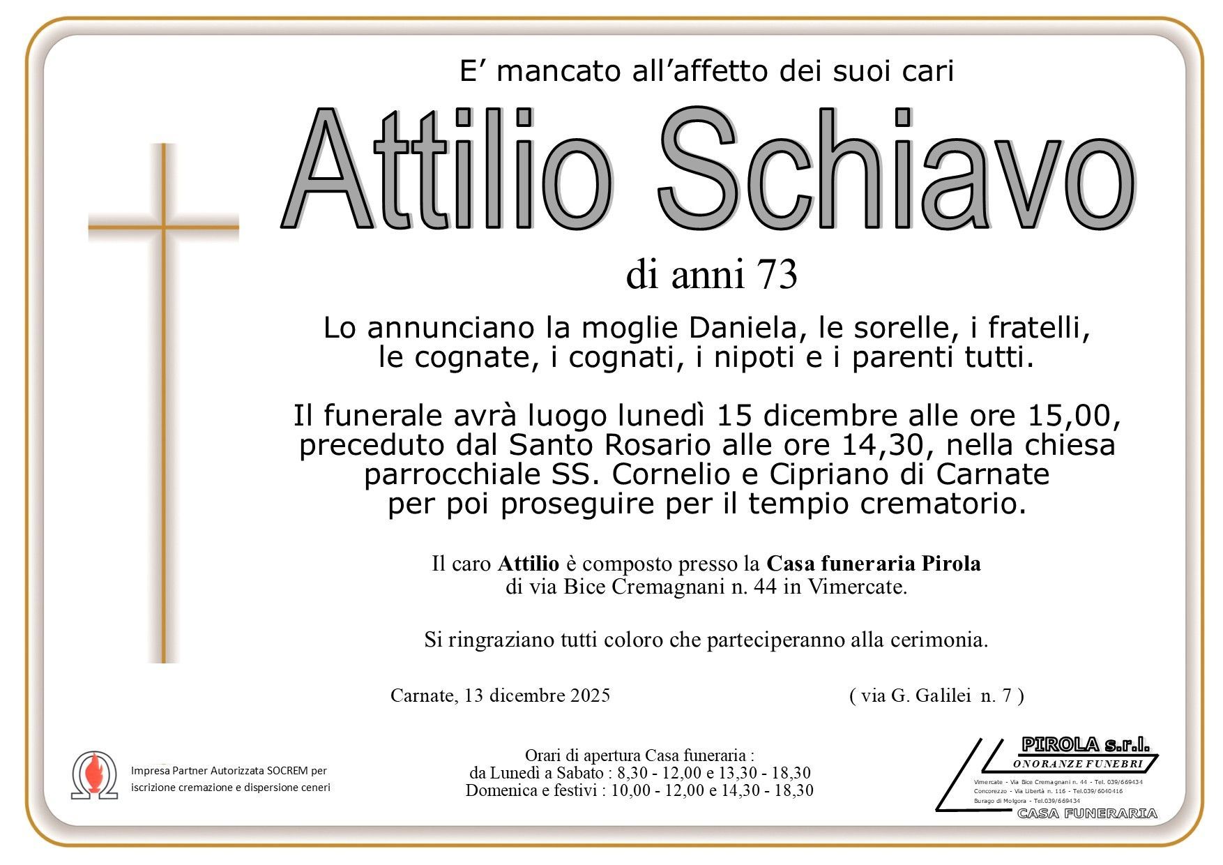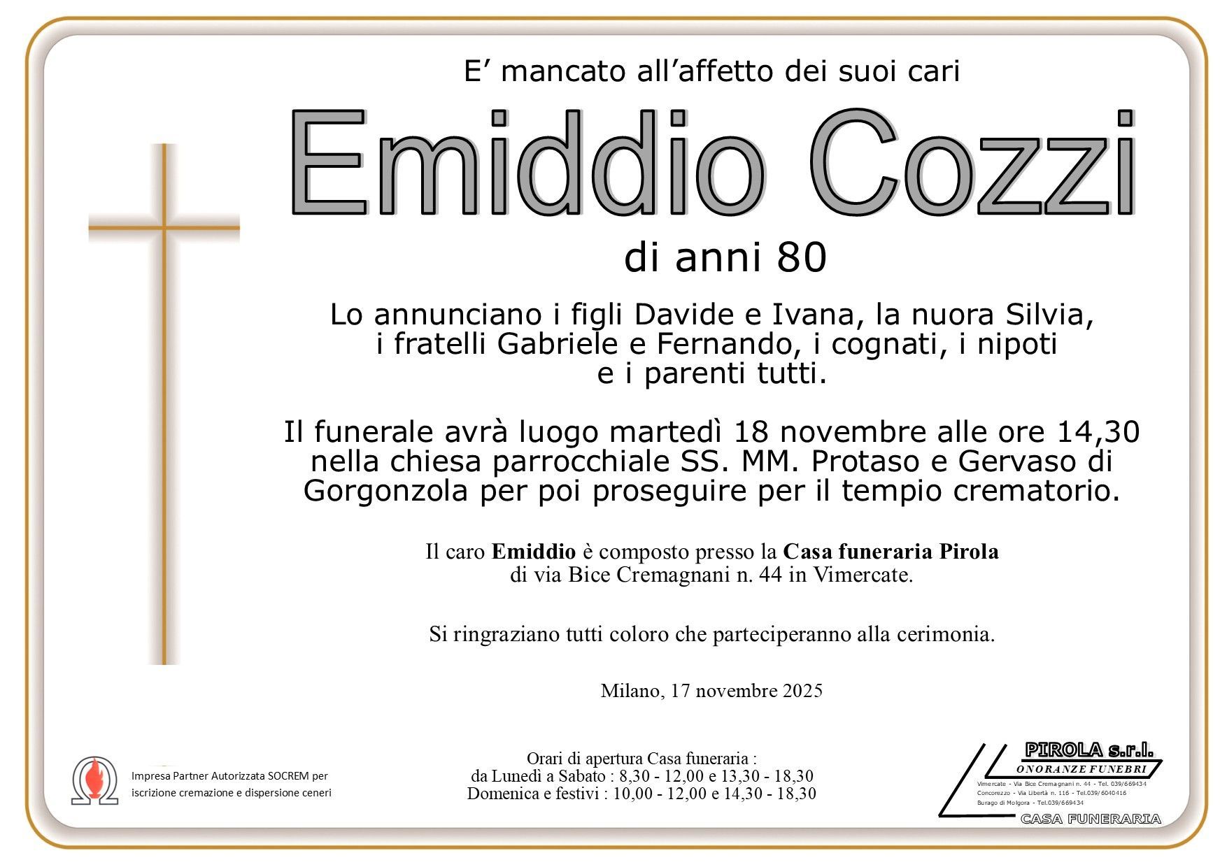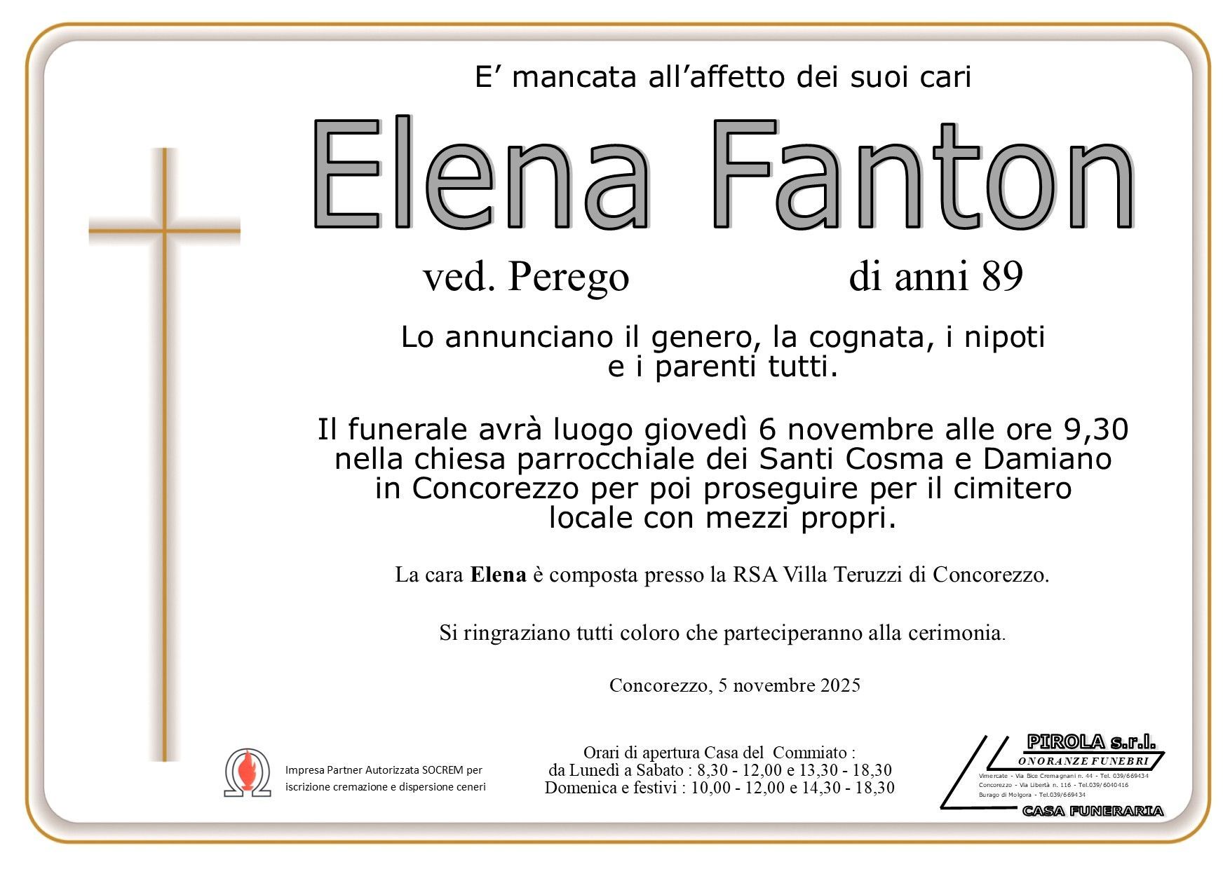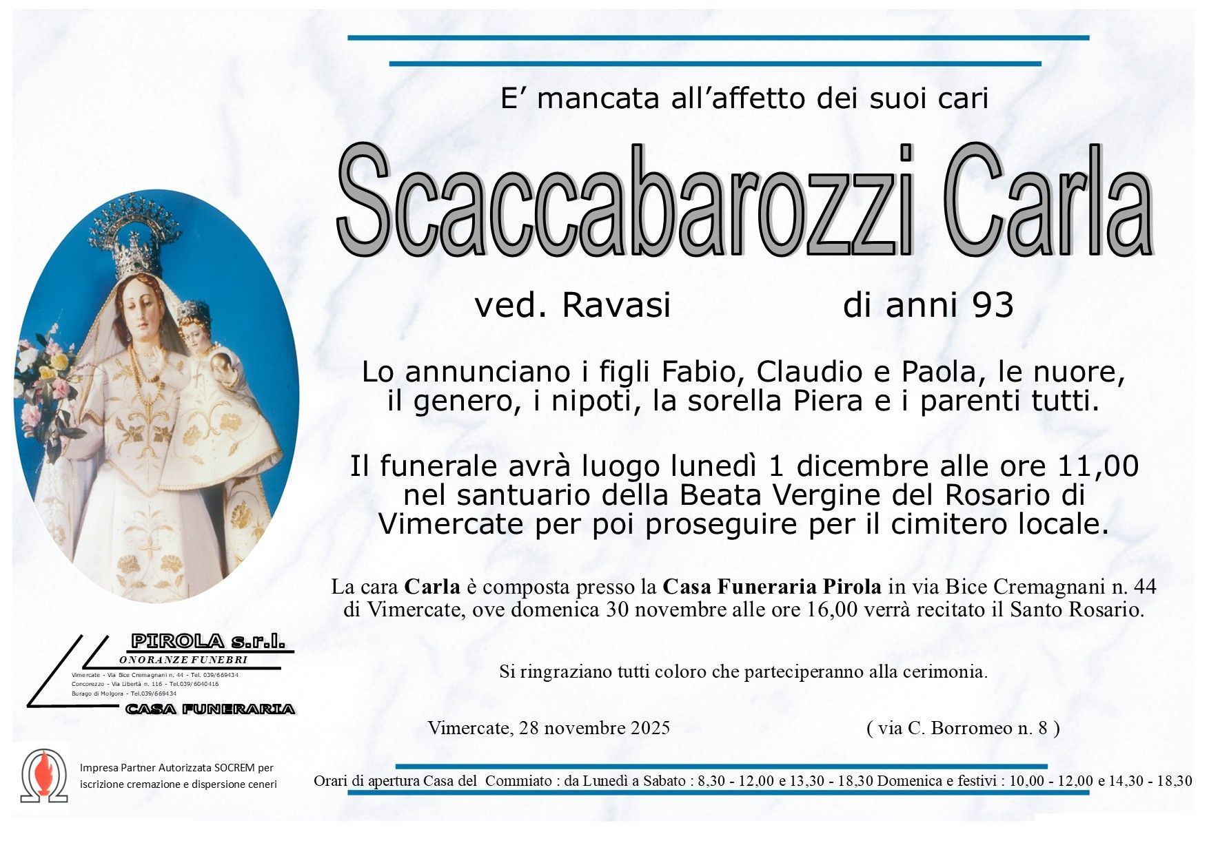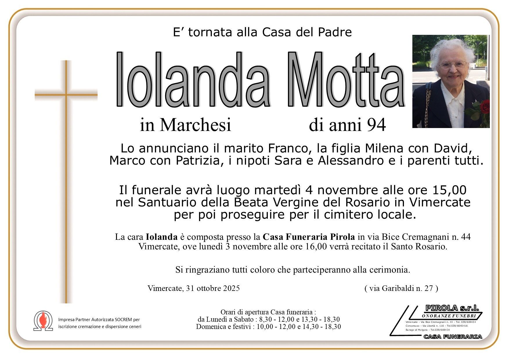 In questa sezione dei necrologi funebri viene offerta anche la possibilità di inviare un messaggio di condoglianze alla famiglia del defunto tramite la nostra agenzia.